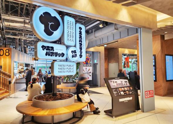 そんな商業ゾーンの中でも、新たな機能を担うスペースとして設置したのが、2階の「ヤエスパブリック」だ。約820平方メートルの空間に、飲食9店舗と物販2店舗の小規模店を配置。自由に利用できるテーブルやいす、ベンチなどを豊富に設置している。三井不動産はこの場所を「新しい公共スペース」として作り込み、単なる飲食スペースではなく、さまざまな過ごし方ができるようにしている。