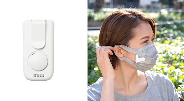 形状も似ており、マスキュレーター PR-F074はマスクにクリップで挟むのに対し、襟エアーファンは襟に挟んで使用する。風量は「弱・中・強」の3種類で、使用シーンは通勤や通学、数時間以内の外出を想定している。こだわったのは、軽量・薄型でありがなら満足感のある風量だという。