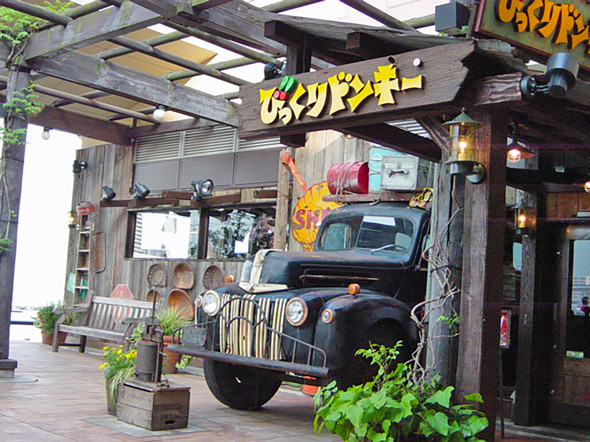 神戸ハーバーランド店(神戸市)では、店舗前に大きなトラックのオブジェらしきものがあり、存在感がある。コンセプトは「港町からの探検ツアー」だという。
