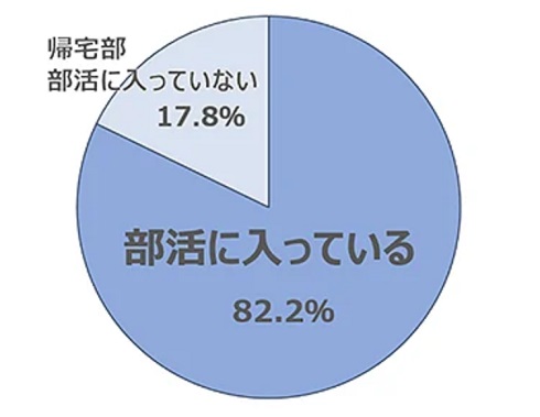 実際に部活に入っている人の割合は、82.2%と大多数が部活に入っていた。一方、帰宅部もしくは部活に入っていない人の割合は17.8%。その理由として「勉強の時間が増える」「バイトがしたい」「課外活動をしているから」といった声があった。