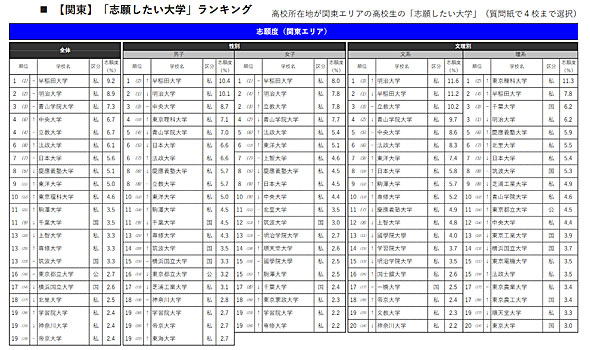 リクルート(東京都千代田区)が運営するリクルート進学総研は「進学ブランド力調査2023」の結果を発表した。24年3月卒業予定の高校3年生に「志願したい大学」を聞いたところ、関東エリアでは早稲田大学、東海エリアでは名城大学、関西エリアでは関西大学がそれぞれ1位だった。