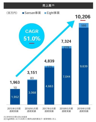 Sansanはもともと名刺の読み取りをベースにしたサービスだ。2015〜19年の売上推移からは、その好調っぷりが見て取れる。
