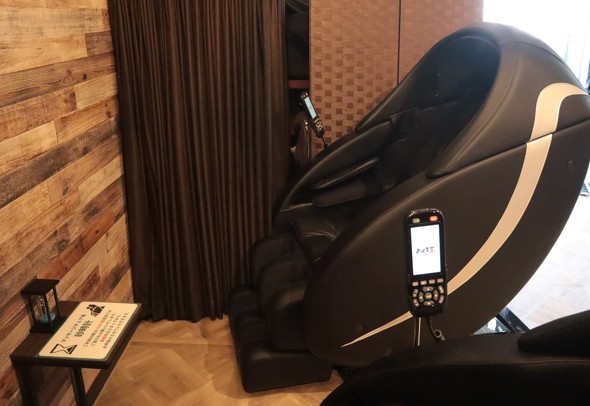 疲れた体を癒やしてもらうために、通常のマッサージチェア2つを無料で利用できるようにしていたが、最近、他の温浴施設だと有料で提供されるような高額なマッサージチェアも2つ追加で導入したという。