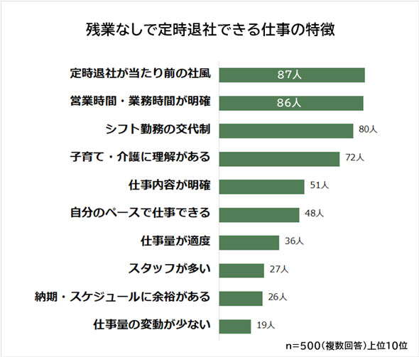 調査は8月19〜30日、インターネットで実施。定時退社ができる仕事をしているビジネスパーソン500人が回答した。