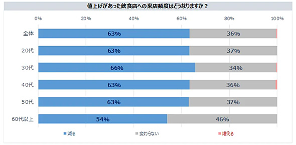 値上げした飲食店の印象が「悪くなる」と回答したのは20%にとどまり、80%が「変わらない」と回答したのである。