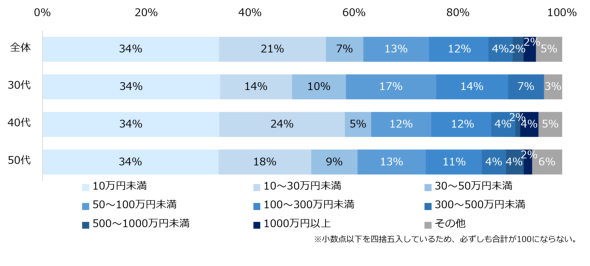 パラレルキャリアや副業によって得られた年収は「10万円未満」(34%)が最多。100万円以上と回答した人も2割に上った(100万〜300万円未満:12%、300万〜500万円未満:4%、500万〜1000万未満:2%、1000万円以上:2%)。
