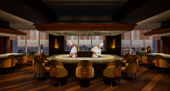 22階には、東京の景色が広がるスカイバー「エスカリエ」がオープン。総料理長によるここでしか味わえない大人のデザートなどを用意している。