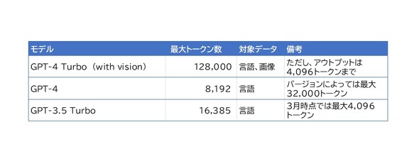 ChatGPTのベースとなる言語モデルは、当初のGPT-3.5からGPT-4、さらにGPT-4 Turboへと進化しています。この進化で果たされたことの一つが、プロンプト(AIへの指示や質問)に入れられるトークン数(日本語では、ほぼ文字数と同じ意味)の増加です。