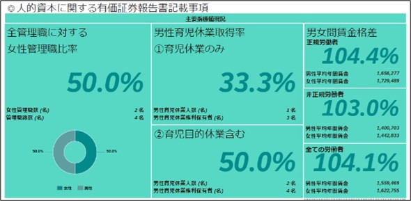 Ulysses 人的資本ダッシュボード®の特筆すべき特徴の一つは簡便性だ。人的資本経営の推進に当たり多くの企業が「何の情報を管理すればよいか分からない」という課題に直面するが、Ulysses 人的資本ダッシュボード®を利用すれば、人的資本関連の国際規格である「ISO 30414」が規定する11領域と、金融庁が公表した人的資本に関する情報の有価証券報告書への記載義務項目がプリセットされているため、悩まずにモニタリングできる。