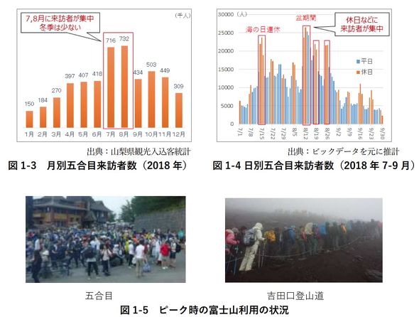 13年にICOMOSが「富士山―信仰の対象と芸術の源泉」を世界文化遺産に推薦するときに、3つの改善点が指摘されていた。1つ目は「適正利用について」。登山道の収容力に見合った来訪者管理が必要だ。2つ目は「環境保全について」。特に7〜8月に自家用車やバスが道路に大きな圧力を与え、排気ガスが懸念される。3つ目は「景観の改善」。簡単にいえば人工物が多すぎる。現在の5合目施設は景観と調和が取れておらず、富士山の神聖さや美しさを損なっている。