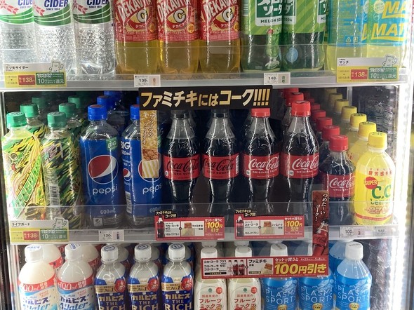 「ファミチキにはコーク」キャンペーンは、コカ・コーラブランド3商品(コカ・コーラ、コカ・コーラ ゼロ、コカ・コーラプラス)とファミリーマートのファミチキのセット販売プロモーションを実施。3種いずれかのコカ・コーラ商品とファミチキを同時購入した場合、100円引きした。