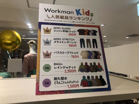ワークマンキッズの商品を先行して展開したイオンモール沖縄ライカム店における人気商品トップ5は、次のようになっている。