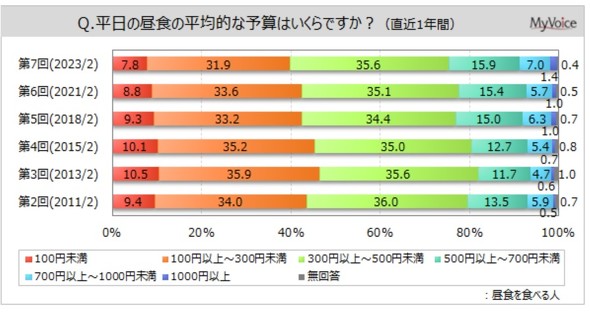 現在、ランチにかける予算はどの程度なのだろうか。いくつかの調査データを参照してみよう。
