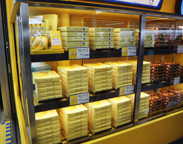 店舗に並べた商品の選定基準はどうなってるのか。グレープストーンの担当者によると、東京ばな奈「見ぃつけたっ」とシュガーバターサンドの木は、同社の売り上げランキング1位と2位の人気商品だという。また、東京ばな奈「見ぃつけたっ」ブリュレタルトは、JR東海リテイリング・プラスに向けて独自開発した商品。強い売れ筋の商品と、JR東海のキオスクを中心に販売する限定商品をそろえたとしている。