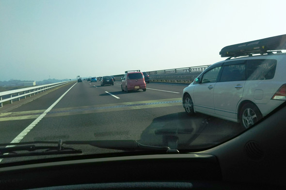 特にほぼ直線路が続くアクアラインでは、前走車を見て追従していくドライバーは車間距離を詰めてしまいやすい。