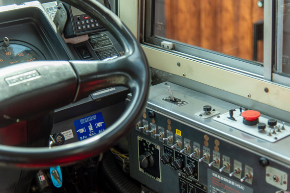かつて伊豆半島各地を走っていたバスは、当時のレトロカラーに塗装して、車両の中央から後方の座席を撤去し、3台のベッドを設置した。クラクションとライトは取り除いたものの、運転席に座ってハンドルや行先表示ボタンの操作を楽しめるようにした。