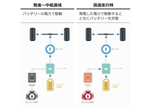 モーター直結で変速機を持たないシリーズハイブリッドが効率良く稼働するのは時速80キロまでといわれているので、主にエントリークラスのクルマ用ということになるだろう。