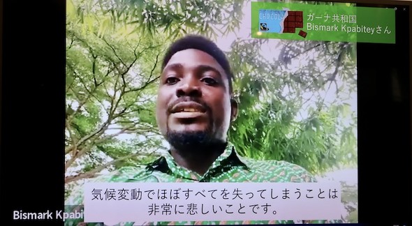 最後は日本の会場に向かって「消費者のみならず各国の政府にもこの問題に立ち上がってほしい。フェアトレードを支持する政策をつくるなどして、農家をしっかりとサポートしてほしい。未来に向けて希望を持ち続けていきたいので、ぜひガーナのカカオ農家を、ガーナのカカオを使ったフェアトレードのチョコレートを応援してほしい」と呼びかけた。