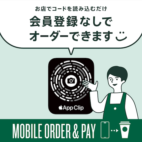 スターバックス コーヒー ジャパン(東京都品川区)は、Appleが提供する「App Clip」を東京都、神奈川県、千葉県、埼玉県、大阪府、愛知県の約1000店舗に5月22日から導入する。これにより、会員登録やアプリをインストールすることなく「Mobile Order & Pay」の利用が可能となる。2024年7月に全国展開(約1900店舗)を予定している。