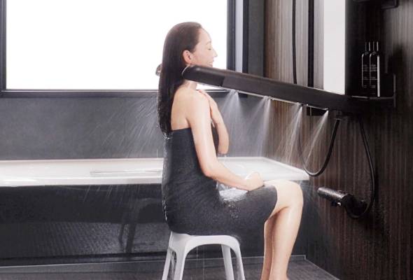 そうした試行錯誤の末、収納時はコンパクトながらハの字型で降りてくるアーム、位置によって異なるノズルなど、これまでにない発想の全身シャワーが完成した。