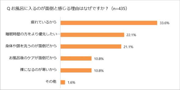 リクシルが2022年に実施した調査によれば、65.8%の人が「お風呂に入るのが面倒だと感じたことがある」と回答。平均入浴時間は20分以下が61.0%と、短めの入浴が主流だった。