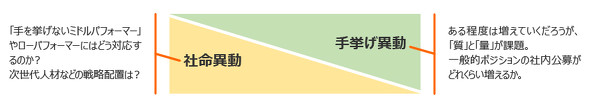 その上で、社命異動でしか対応できない異動ニーズに対して社命異動で補完することをお勧めしたい。そのニーズとは、次の2つだ。