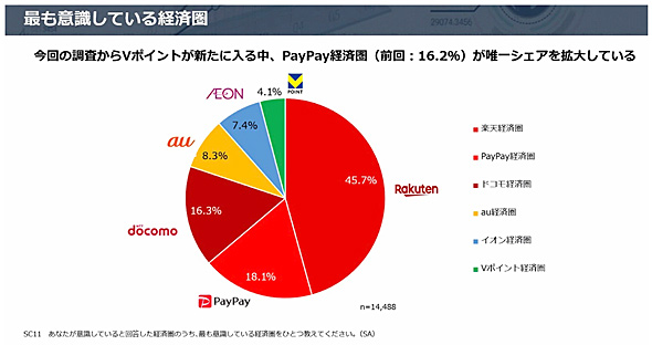 「最も意識している経済圏」を尋ねると、状況はさらに悪化する。先の「活用しているポイント」と「メインで使っているポイント」が現状を尋ねたものだとすれば、この「意識しているポイント」は将来のトレンドを示すものだ。