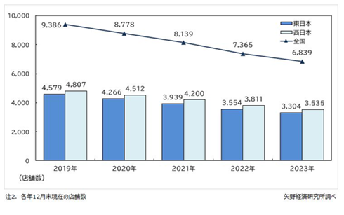 さらに、2024年は新紙幣の発行に伴う設備機器の刷新が控えていて、紙幣改刷対応への費用負担も続く。矢野経済研究所は「今後も小規模法人や遊技機設置台数の少ない小型店舗の経営企業を中心に、企業数や店舗数の減少が続く」と予測している。
