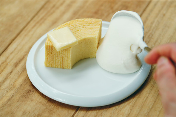 「農家でもTHEOが活躍するようになっています。最初のきっかけは宮崎県の養鶏農家でした。養鶏農家は10万羽20万羽が卵を毎日生んでいるのですが、そうすると数パーセントのフードロスが発生します。この出荷できない卵をTHEOのバウムクーヘン作りに生かせないかということで打診を受けました。フードロス削減が目的とのことで、われわれも喜んで貸し出しました」