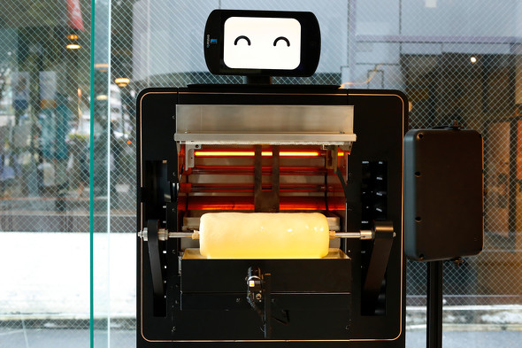 「バウムクーヘンを焼く技術は、機械を動かすだけでも3週間の研修が必要です。さらにベテラン職人と同じように熟達するには1年から2年はかかります。ところがTHEOを活用することによって、3日間のデータ作りさえすれば、あとは菓子職人として活躍してくれます」
