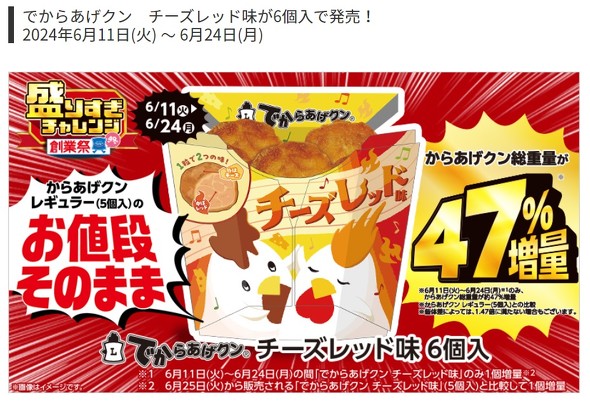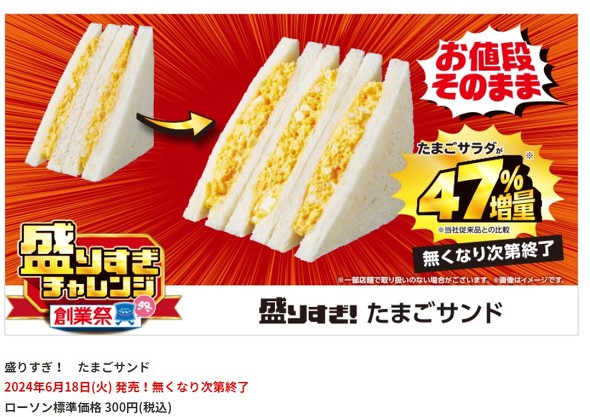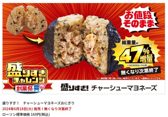 今回の盛りすぎチャレンジでは、いくつか新しい施策に取り組んでいる。例えば、グループの「ローソンストア100」でも、同様のデカ盛りチャレンジを開催している。また、同社の創業49周年を記念した「創業祭福袋」(1080円)を発売したところすぐに完売した。運営面では、過去の盛りすぎ対象商品の販売実績も考慮し、日々の発注数を予約制にするといった工夫もしている。