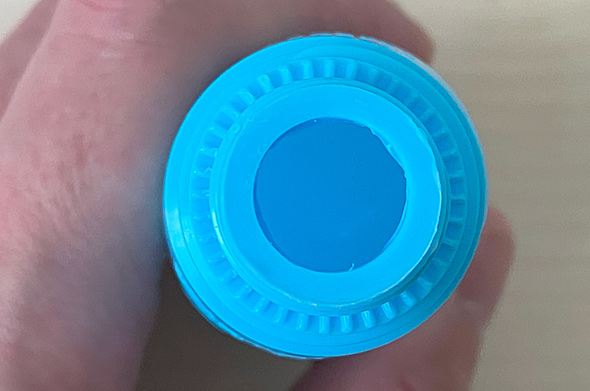 こうした結果を踏まえ、たどり着いた理想的なキャップは穴の開いたプラスチック製。過去に海外向け液状のりに採用したキャップを取り付けて試したところ、ヤマト糊がスムーズに出てきたので何一つ変更することなく採用した。