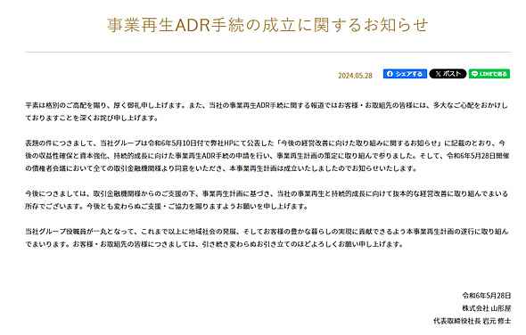 鹿児島県唯一の百貨店にして、創業270年の名門企業である山形屋が借入金の返済に行き詰まり、グループ会社16社とともに私的整理の一種である「事業再生ADR手続き」に入っていると報じられた。百貨店業界以外にも大きな衝撃を与えたのは記憶に新しいところだ。