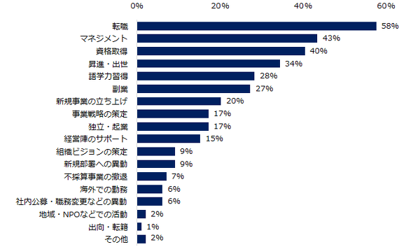 「転職」と回答したユーザーからは「転職により別の視点を得ることができたため、役立てられると考えている」、「マネジメント」と回答したユーザーからは「年齢が高くなり職位も上がっていくと、必ず必要になる」、「資格取得」と回答したユーザーからは「現状よりは確実にキャリアアップにつながると思われるので、必ず取得するつもり」――などの意見が上がった。