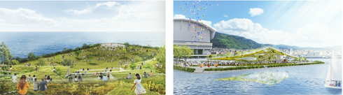 「神戸アリーナプロジェクト」を運営するOne Bright KOBE(神戸市)は、神戸ウォーターフロントの新エリア「TOTTEI PARK」を着工した。2025年4月に多目的アリーナ「GLION ARENA KOBE」がオープンする予定で、その中にある建築物「緑の丘」の工事を開始した。