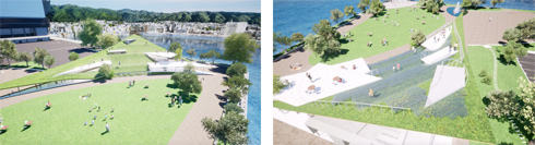 TOTTEI PARKのコンセプトは「Open(広場性)」「View(眺望性)」「Green(緑化)」「Symbolic(モニュメント性)」。この4つをベースに、神戸の港と六甲山の山並みを感じられるスポットにすることで、エンターテインメント最先端エリアを目指す。