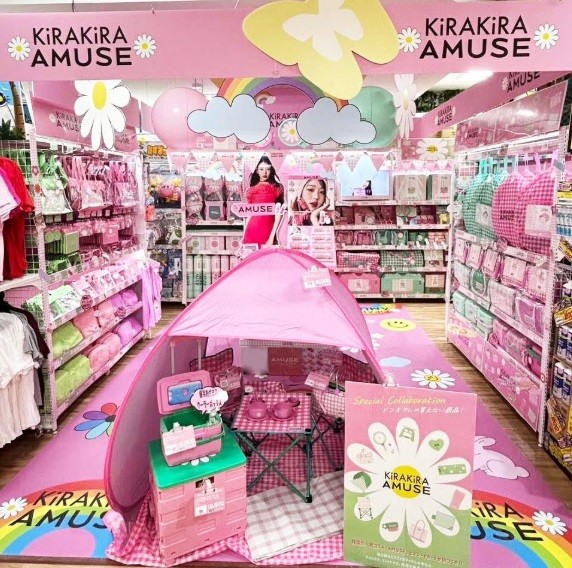 ドン・キホーテを運営するパン・パシフィック・インターナショナルホールディングス(以下、PPIH)は、韓国のビューティーブランド「AMUSE(アミューズ)」と共同開発したブランド「KiRAKiRA AMUSE(キラキラアミューズ)」を立ち上げた。6月28日からアウトドアグッズなど34アイテムを発売する。カラーバリエーションが少ないアウトドア市場に、コスメのようなカラフルな色使いの商品を投入し、女性の需要獲得を狙う。