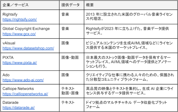 団体名は「Dataset Prioviders Aliance(以下、DPA)」。米国の音楽ライセンス代理店「Rightsify」をはじめ、音楽、画像、動画、テキストといった、AI開発のための学習に使用されるデータを提供する7社が参加する。