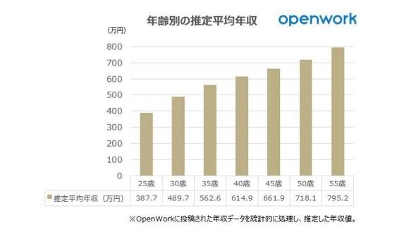 一方、同社が運営するサービス「OpenWork」に投稿された年収データを対象に算出した30歳の推定平均年収は489.7万円で、JPモルガン証券とは大きな開きが見られた。