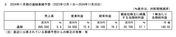 海外事業の持続的な成長に加え、総菜・調味料の物量回復や値上げなどにより、売上高が増加。営業利益についても、主原料高騰影響の緩和などを受け増益となった。同社はインバウンド消費の増加や鶏卵相場の落ち着きにより、経営環境が回復傾向にある中で、投資の拡大や海外での資源投下を進める。