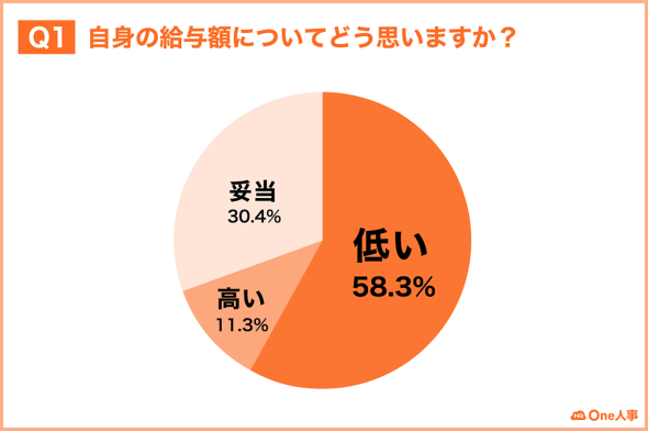 人事DXシステム「One人事」を運営するOne人事(東京都品川区)が、Z世代(16〜28歳)の社会人を対象に実施した調査から、58.3%が「自身の給与額を低い」と捉えていることが分かった。