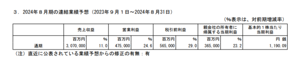 また、業績と為替レートを反映し、通期の業績予想を上方修正。純利益を前期比で23.2%の増加見込みとした。