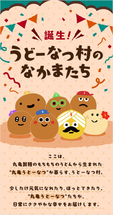 引き続きプロモーションにも力を入れており、テレビCMのほか、SNSや公式Webサイトを通じて丸亀うどーなつの公式キャラクター「うどーなつ村のなかまたち」による4コマ漫画やアニメーション動画なども公開していく。