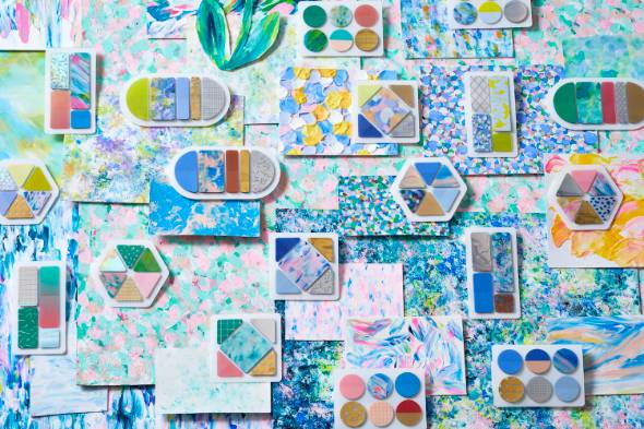 コスメを楽しむ感覚で、自分らしく自由な彩りで手帳などのデコレーションを楽しめるシールを作ろうと企画がスタート。動物やハートといった人気モチーフをあえて外し、丸や四角、三角といった形状にするなど、「極限までコスメパレットに近づける」ことを意識したそうだ。