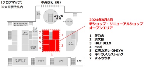 JR東日本クロスステーション デベロップメントカンパニー(東京都渋谷区)は、運営するJR大宮駅のエキナカ商業施設「エキュート大宮」をリニューアルすると発表した。埼玉県初出店となる4ショップを含む7ショップが8月8日にオープンする。