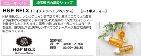 ノンカフェイン専門店「H&F BELX」を始め、カヌレの専門店「立町カヌレ OMIYA」、調味料や日用雑貨の専門店「茅乃舎」など、生活に密着した7ショップを新たに展開する。