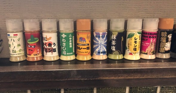 「塩・酒・肴 中井商店」は、東京・日本橋の老舗塩問屋である「中井商店」が運営。居酒屋・日本料理の店として初出店する。卓上に用意されたレモン塩、わさび塩、カレー塩など10種類の塩で、唐揚げ、ゆで卵などさまざまな料理の味変が楽しめる、ユニークな店だ。