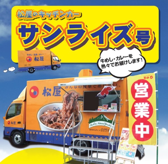キッチンカーは、競合の松屋やすき家にも存在する。例えば、松屋の「サンライズ号」は看板メニューの牛めしだけでなく、限定メニュー「唐揚げ牛めし」、ソーセージ、豚汁、かき氷などの販売を可能だとしている。公式Webサイトによると、スポーツ大会や文化祭などのさまざまな会場に出向いているという(出店条件などは要問合せ)。すき家のキッチンカーもさまざまなイベントに出店し、食事を提供している。