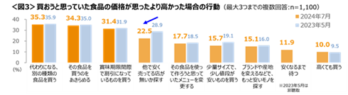 上位は2023年5月の調査と大きな差は見られなかったが、「他で安く売ってる店が無いか探す」は22.5%と6ポイントほど減少した。