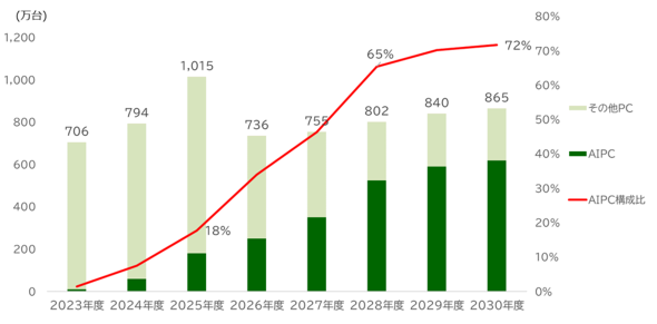 その結果、ホワイトカラーの生産性向上に課題を持つ日本企業は、AIパソコンが得意とする情報検索、整理、要約や翻訳といった機能に着目し、積極的に投資するとした。AIパソコンの普及は大企業がけん引するとみられ、形状別ではモバイルノートブックがけん引役と予想する。2026年度以降は買い替え需要とは別に、市場全体の需要が拡大していくという。